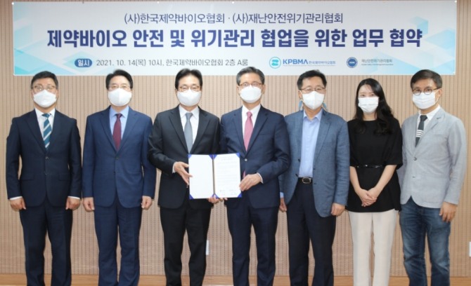 이미지 확대보기한국제약바이오협회는 14일 오전 서울 방배동 제약회관에서 사단법인 재난안전위기관리협회와 '제약바이오 안전과 위기관리 협업을 위한 업무협약'을 체결했다고 밝혔다.