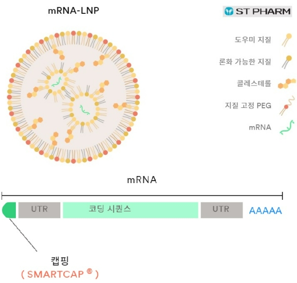 에스티팜의 고유 캡핑 유사체인 '스마트캡'은 이미 상표권으로 등록이 완료된 상태다. LNP가 mRNA를 분해되지 않고 세포안으로 전달시켜주는 전달체로 이화여대 이혁진 교수 연구팀과 공동으로 개발중인 차세대 LNP 후보물질 2종의 비임상 동물시험이 진행중이며, 국내 특허출원 또한 진행중이다.