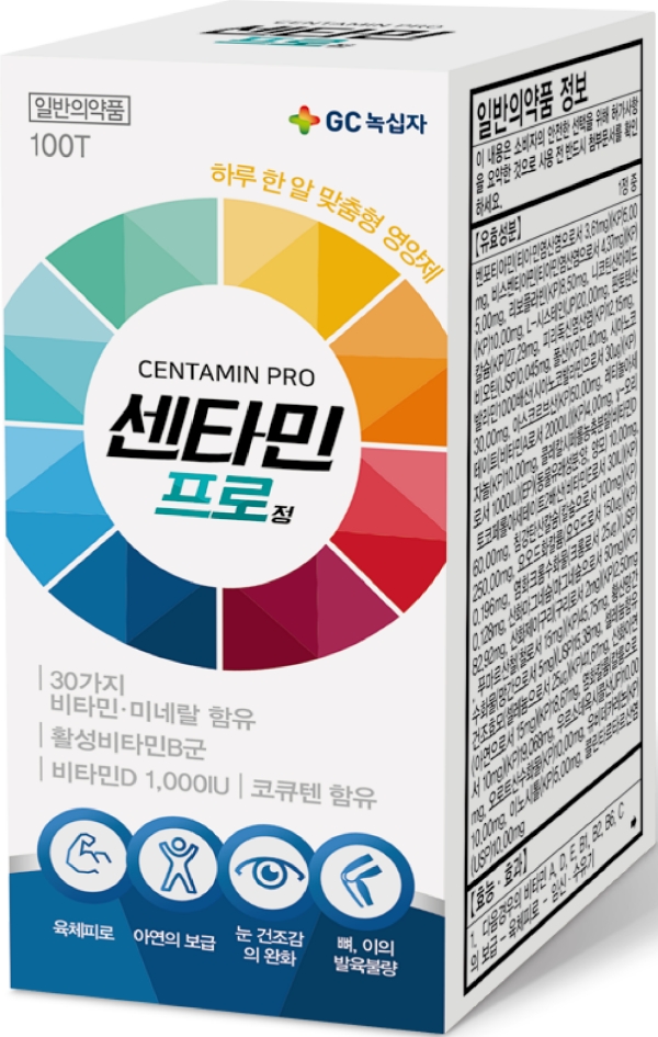이미지 확대보기'센타민프로'는 한 알에 30가지 유효 성분이 들어있어 필수 영양소 섭취가 부족한 현대인에게 적합한 제품이며, 비타민B1을 함유해 에너지 대사 활성화와 피로 회복에 도움을 준다는 게 회사 측의 설명이다.