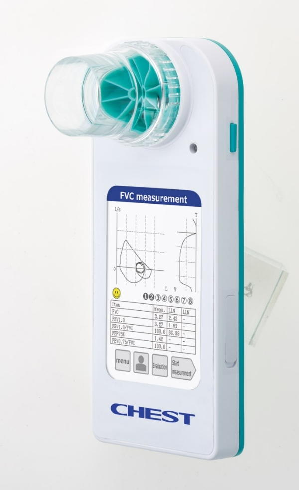 체스트메이트는 측정 후 기기 화면에서 천식과 만성폐쇄성폐질환(COPD), 호흡기장애여부, 강제폐활량(FVC) 그래프 등 결과도 확인할 수 있어 별도의 검사자 해석이 필요 없다. 1명 당 최대 8회까지 검사가 가능하며, 200명의 환자 정보를 등록할 수 있다.