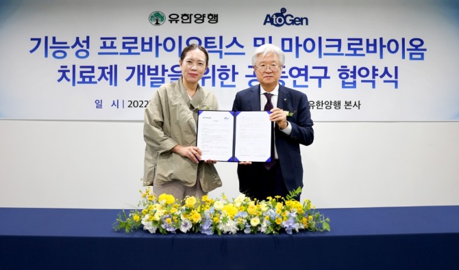 이미지 확대보기유한양행은 기존 주식 인수를 통해 1대 주주 지위를 확보했다. 내년 초 별도 유상증자를 통해 추가 지분을 확보할 예정이다. 동시에 양사는 기능성 프로바이오틱스를 활용한 건강기능식품 분야와 인간의 장내 미생물총 조절을 통해 치료 효능을 가지는 마이크로바이옴치료제 분야에서 공동 연구개발을 진행하기로 협약했다.