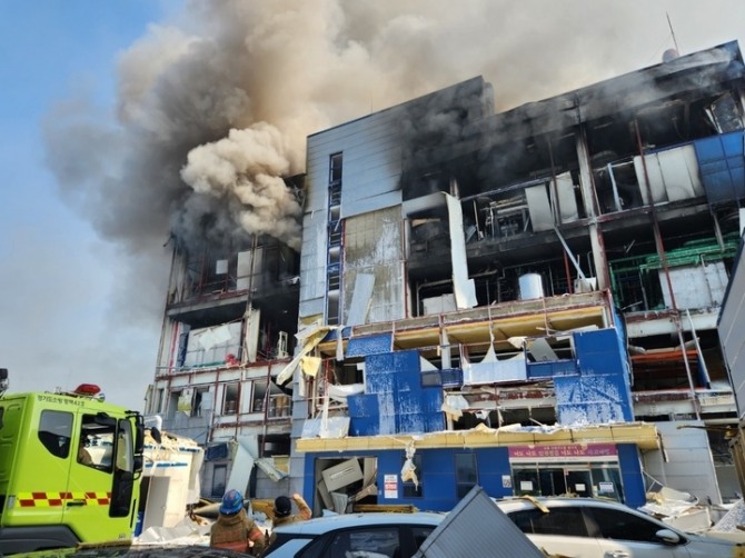 이미지 확대보기30일 소방당국 등에 따르면 이날 오후 2시22분경 경기 화성시 향남읍 상신리 화일약품에서 폭발로 인한 화재가 발생했다. 불은 아세톤 유증기가 폭발하면서 발생한 것으로 추정되고 있다.
