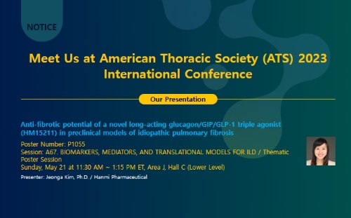 이번 ATS에서 발표한 연구 결과는 특발성 폐 섬유증 모델에서 랩스 트리플 아고니스트의 효력을 평가한 것으로 한미약품은 이를 반복 투약시 혈중 산소포화도가 증가하고 섬유화 지표들이 유의하게 개선된 점을 확인했다. 이같은 섬유화 진행 억제 및 폐기능 개선을 통해 동물 모델에서 질병 진행에 따른 사망률을 낮췄다.