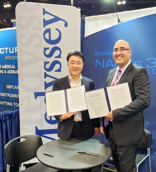 이미지 확대보기메디쎄이가 참가한 NASS는 척추 분야에서 가장 권위있는 국제 학회로 로스앤젤레스에서 10월 18일부터 21일까지 나흘간 개최됐다. 메디쎄이가 미국 전 지역의 주요 병원에 근무하는 주요 의사 4명과 체결한 협약은 △제품 공동개발 △기술 이전 △투자 등을 협력하는 협약이다. 이와 함께 비임상 시험과 유효안전성을 입증하는 임상실험도 진행해 현지에서 신제품과 기술개발 추진에 나선다.
