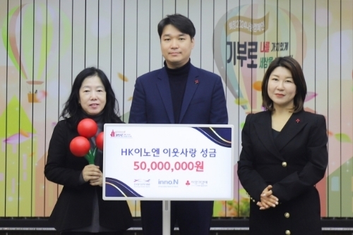 이미지 확대보기HK이노엔은 걸음 기부 캠페인 '걸음엔 이노엔'을 통해 장기기증자 자녀에게 장학금 5000만원을 전달했다고 14일 밝혔다. HK이노엔은 13일 서울시 중구에 위치한 사랑의열매 회관에서 장학금 전달식을 열고 사회복지공동모금회에 장학금을 기부했다. 전달한 장학금은 장기기증자 자녀의 교육 지원 등에 사용된다. 걸음엔 이노엔 시즌5에는 HK이노엔 임직원과 일반인을 포함해 총 2만1000여명이 참여했으며 목표 걸음인 5억 걸음에서 332% 초과한 16억6000만 걸음을 달성해 소나무를 최대 3만 6000그루 심은 것과 같은 탄소 절감 효과를 얻었다.