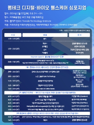 심포지엄은 허준렬 하버드 의과대학 교수의 '글로벌 펨테크 연구 동향' 기조연설로 시작된 뒤 총 3부로 나뉘어 진행된다. 김영주 펨테크 연구소장이 좌장을 맡는 1부에서는 '펨테크 라이프 케어'를 주제로 박선화 펨테크 부소장, 최인희 박사, 황도식 연세대 교수, 임국진 프로테옴텍 대표가 강의를 진행한다.