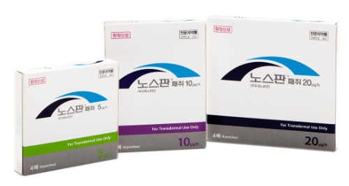 또한 경피 패취 제형인 노스판 패취는 부착 시 혈액으로 바로 흡수되어 이에 따라 간 대사과정을 거치지 않아 소화기 부작용도 없어 주 1회 부착으로 일주일 간 지속적인 통증 조절이 가능하다.