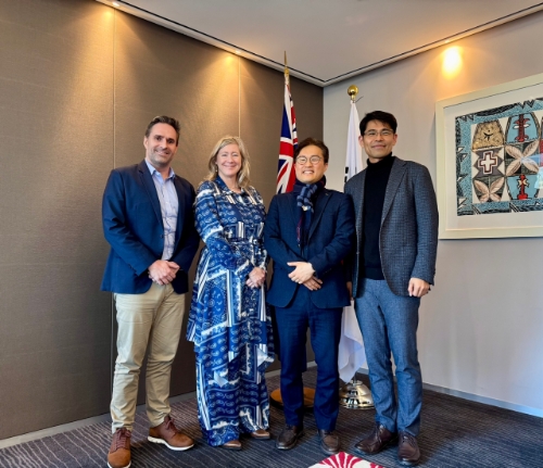 이미지 확대보기박일범 광동제약 천연물융합연구개발본부장은 주한 뉴질랜드 대사관을 방문해 주한 뉴질랜드 던 베넷 대사, 리차드 던시스 무역산업진흥청 대표와 만남의 시간을 가졌다. 녹용을 매개로 성사된 자리에서 광동제약 참석자들은 청정자연 속 체계적인 원료 관리 시스템과 동물복지 인프라를 갖춘 뉴질랜드의 녹용에 대한 신뢰감을 드러내며 한방의약품의 주원료로 오랜 기간 녹용을 연구한 기업으로서 인연을 강조했다.