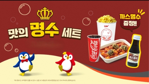 이미지 확대보기이번 프로모션은 오는 28일부터 5월 11일까지 2주간 CGV 용산아이파크몰점에서 진행된다. 이벤트 기간 동안 매점에서 '씨네밀 세트'를 구매한 고객에게는 탄산계 액상 소화제 '까스명수액'이 1병이 증정된다.