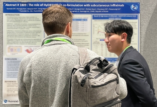 이미지 확대보기휴온스랩은 미국 시카고에서 열린 '미국암연구학회(AACR) 2025'에서 재조합 인간유래 히알루로니다제 'HLB3-002'를 활용한 제형 변경 연구 결과를 포스터 발표했다고 29일 밝혔다.