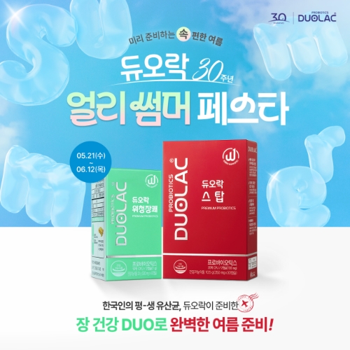 쎌바이오텍 관계자는 "여름철은 장내 환경이 외부 요인에 민감하게 반응하는 시기로 물갈이 설사와 같은 증상을 예방하기 위한 사전 대비가 필요하다"며 "여름철 장 건강을 지켜주는 듀오락 스탑, 듀오락 위청장쾌를 비롯해 독자 개발한 CBT 유산균으로 구성된 듀오락 제품으로 건강하고 편안한 여름휴가를 보내시길 바란다"고 전했다.