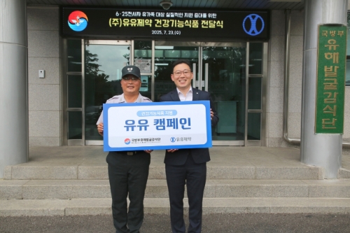 이미지 확대보기유유제약은 6·25 전사자 유해발굴사업 확산을 위한 '유유 캠페인'을 협업하고 있는 국방부 유해발굴감식단(이하 국유단)에 건강기능식품을 지원했다고 28일 밝혔다.