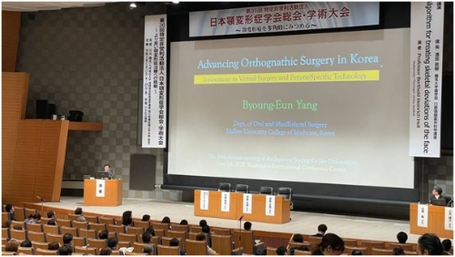 양 교수는 '한국 양악수술의 발전: 가상 수술과 환자 맞춤형 기술의 혁신'을 주제로 디지털 기술을 활용한 한국의 양악수술 시스템을 구체적으로 소개했다. 수술 전 3차원 컴퓨터 영상과 콘빔컴퓨터단층촬영(CBCT) 데이터를 기반으로 환자에게 적합한 수술 계획을 세우고 환자 맞춤형 수술 가이드 및 고정 장치(PSI)를 제작해 실제 수술에 적용하는 방법을 설명했다.