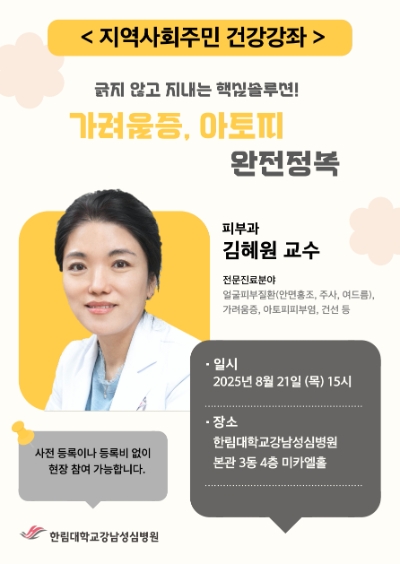 그는 "아토피피부염과 가려움증은 단순히 알레르기뿐 아니라 여러 신경·면역학적 기전이 복합된 질환으로, 환자 개인에 맞는 맞춤형 치료가 중요하다"며 "이번 건강강좌가 만성 피부질환으로 힘들어하는 지역주민들에게 실질적인 도움을 드리는 자리가 되길 바란다"고 말했다.