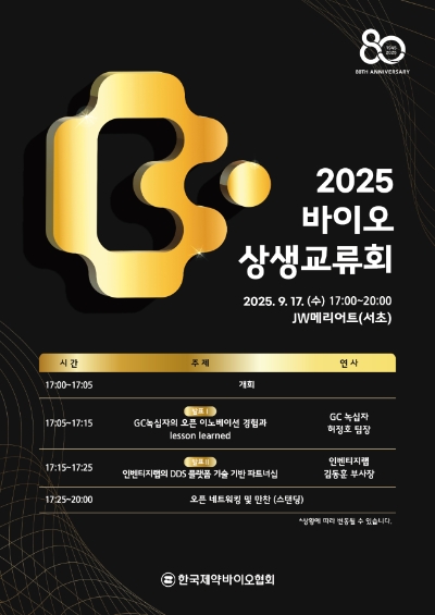 이번 행사에서는 국내 제약바이오사들의 오픈 이노베이션 경험과 신기술 기반 협력 사례가 공개된다. 허정호 GC녹십자 팀장이 'GC녹십자의 오픈 이노베이션 경험과 lesson learned'를 발표하고 김동훈 인벤티지랩 부사장은 '인벤티지랩의 DDS 플랫폼 기술 기반 파트너십'을 소개할 예정이다.