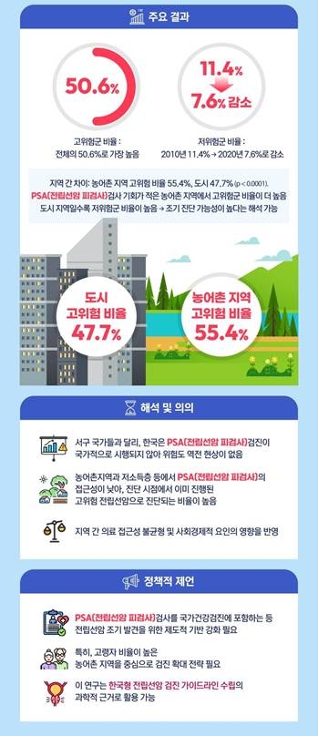 연구진은 이와 관련해 “서구 국가에서는 PSA(Prostate-Specific Antigen, 전립선특이항원) 선별검사 도입 이후 저위험군 비율이 증가하는 추세와 달리, 한국은 이와 반대로 저위험군 비율은 감소하고, 고위험군 비율이 높아지는 역현상이 발생하고 있다”며, “이는 국가 차원의 조기 검진 체계가 부재한 결과”라고 분석했다.