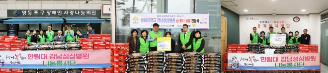 이미지 확대보기한림대학교강남성심병원은 위로(We路)캠페인의 일환으로 지난 11일 지역사회 소외된 이웃들이 따뜻한 설 명절을 보낼 수 있도록 ‘사랑의 쌀 나눔’ 성금을 전달했다.