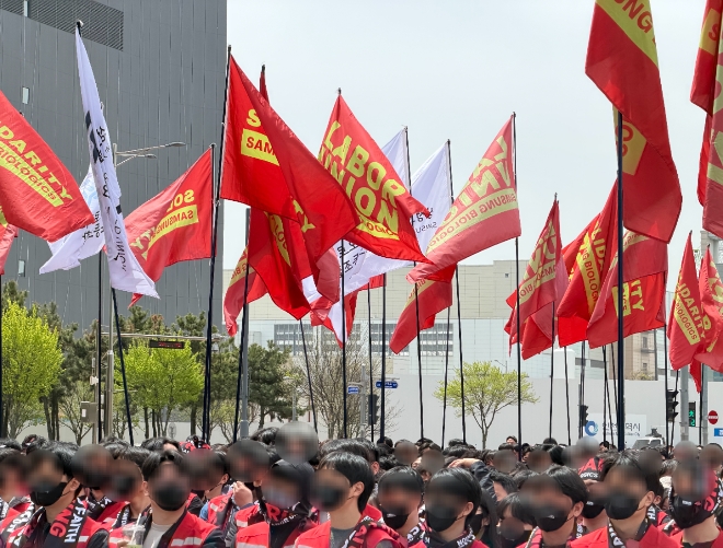 한편, 삼성바이오로직스는 노조가 투쟁결의대회를 연 같은 날 올해 1분기 매출 1조2571억 원과 영업이익 5808억 원을 각각 기록했다고 공시했다. 이는 전년 동기 대비 각각 25.8%와 35% 증가한 수치다.