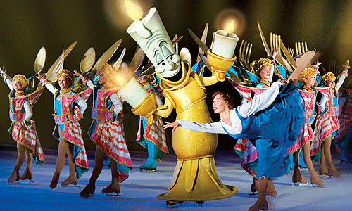 <디즈니 온 아이스>를 제작한 펠드(Feld) Entertainment는 “관객들에게 지금까지 경험하지 못한 아이스쇼를 선보이기 위해 월드클래스급 스케이터들의 파워출한 스케이팅과 재능있는 크리에이티브 팀 그리고 반짝반짝한 세트와 드라마틱한 조명 등으로 무대를 꾸몄다.”고 설명한다. 그 중 가장 눈에 띄는 것은 로프를 타고 플라잉 액션을 선보이는 <인어공주>의 에릭 왕자와 <알라딘>이다.