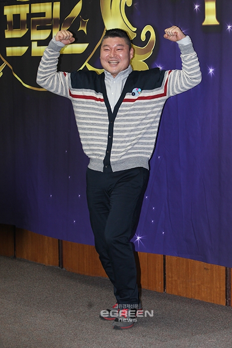 [글로벌이코노믹=유흥선 기자] 강호동이 16일 오전 서울 영등포구 여의도KBS 신관 국제회의실에서 에서 열린 ‘달빛프린스’ 기자간담회에 참석해 '강심장 캐릭터' 포즈를 취하고 있다.