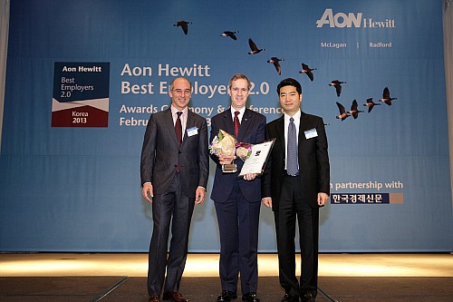 2년마다 선정되는 에이온 휴잇의 ‘최고의 직장’ 상은 전세계 기업 가운데 직원들이 높이 몰입할 수 있는 근무환경을 구축하고, 기업의 사명에 정서적인 유대감을 갖고, 지속적인 성장을 도모하는 문화를 성공적으로 조성한 기업들에게 수여된다.