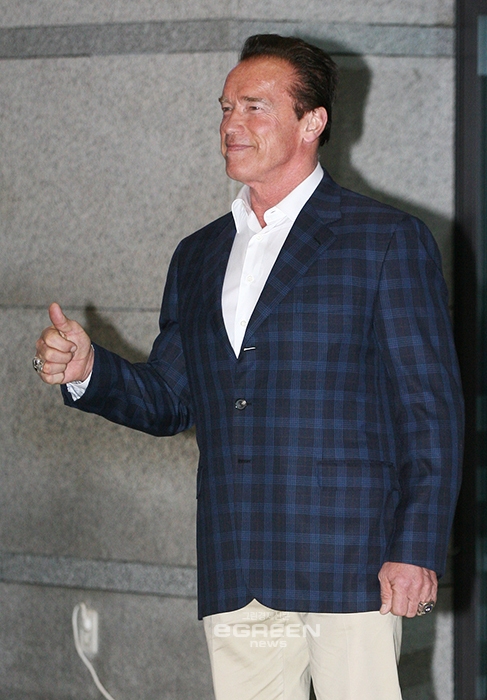 이미지 확대보기▲배우겸정치가아놀드슈왈제네거가영화‘라스트스탠드’홍보및공식내한기자회견을위해입국해포즈를취하고있다.