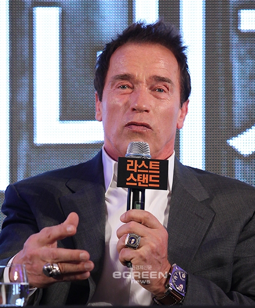 [글로벌이코노믹=유흥선기자] 배우 아놀드 슈왈제네거가 20일 오후 서울 여의도 콘랜드 서울 그랜드 볼룸에서 영화 <라스트 스탠드>의 국내 개봉을 앞두고 홍보 및 공식 내한기자회견에서 김지운 감독의 촬영스타일에 만족감을 표한다고 밝혔다.