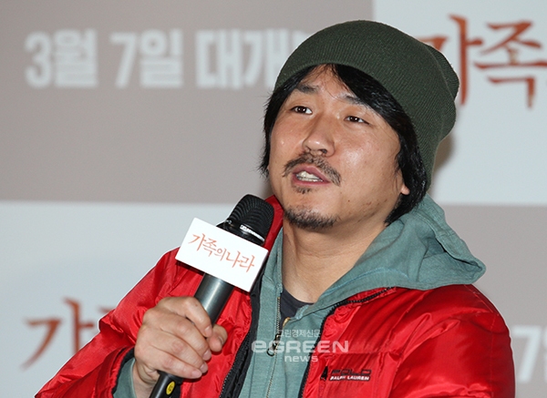 ▲양익준감독이영화'가족의나라'의언론/배급시사회에서우리영화가국회에서상영되기를바란다고밝혔다.