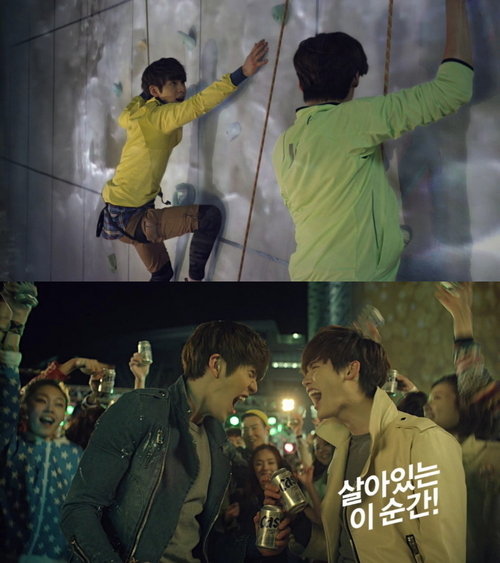 고층 빌딩을 오르내리는 김우빈과 이종석이 서로 견제하며 클라이밍 대결에 열중하는 모습과 빠른 템포의 음악이 더해져 긴장감을 극대화 시킨다. 치열한 승부는 뜻밖의 결과로 이어지고 카스와 함께 하는 시원한 축배로 마무리된다.