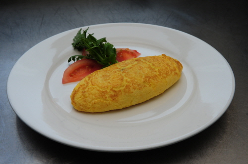 ⑤ 프라이팬에 버터와 오일을 두르고 최단 시간 내에 오믈렛을 만들어 낸다. ④의 재료들은 오믈렛을 만들 때 속에 집어넣는다.