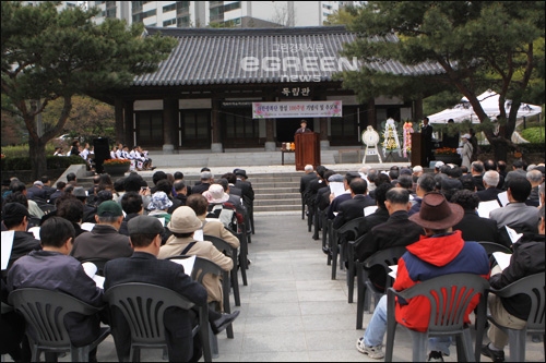 이미지 확대보기제문봉독을 마친 뒤 추모사가 있었다. 안홍순 부회장이 대신 읽은 추모사에서 광복회 박유철 회장은 “선열들의 위대한 업적을 알리는 데는 아직 어려움이 많습니다. 우리 대한민국은 선열님들의 발원대로 독립국가가 되었지만, 남과 북으로 분단되어 반쪽짜리 독립국가일뿐이며, 국권을 회복한 지 68년의 세월이 흘렀건만 아직도 친일잔재를 제대로 청산하지 못하고 있어 선열들을 뵐 낯이 없습니다.”라고 고백했다.