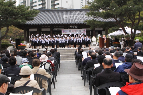 [글로벌이코노믹=김영조문화전문기자] “吾人은 大韓獨立光復을 위하여 吾人의 生命을 犧牲에 供함은 勿論 吾人의 一生에 目的을 達成치 못할 시는 子子孫孫이 繼承하여 讐敵 日本을 完全 驅逐하고 國權을 光復하기까지 絶對 不變하고 一心 戮力할 것을 天地神明에게 誓告함” 이는 1913년 경북 영주시 풍기에서 채기중을 중심으로 조직된 대한광복단의 포고문이다. 대대손손 일본을 몰아내고자 온 힘을 쏟을 것이란 결연한 의지가 드러난다. 삼일만세운동이 일어나기 6년 전 경북 풍기에서는 조국광복을 목적으로 최초의 비밀결사조직인 독립운동 단체 <대한광복단>이 결성되었다. 그 대한광복단 창설 100주년 기념행사 및 추모제가 4월 28일 오전 11시에 서울 서대문 대한민국순국선열유족회 순국선열위패봉안관 앞에서 광복회 서울시지부 주최로 있었다.