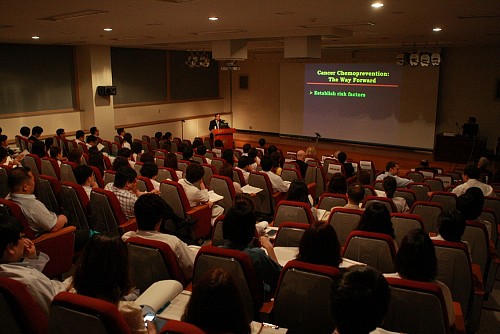 안전한 화학물질을 이용해 정상세포가 암으로 진행되는 것을 억제, 지연시키는 예방 의료적 수단으로서 각광받고 있는 '화학적 암 예방'을 주제로 다룬 이날 심포지엄에는 김청수 아산생명과학연구원장을 비롯한 서울아산병원 연구자들과 하워드 베일리 교수를 비롯한 미국 위스콘신 대학 연구자 10여명, 서울대 약대 서영준 교수 등이 좌장 및 연자로 참석했다.