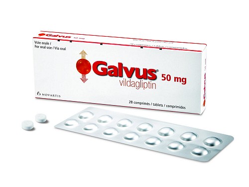 노바티스가 약물사용자문위원회의에 제출한 두 건의 임상시험(LAF237A23152 및 LAF237A23135) 결과에 따르면, 449명을 대상으로 24주 동안 인슐린 또는 인슐린 및 메트포르민과 가브스 50mg을 1일 2회 병용 투여했을 시 당화혈색소 감소가 플라시보 대조군에 비교우위를 보였다. 저혈당 발생빈도는 위약군과 비슷한 수준으로 나타났으며 체중 증가가 나타나지 않았다.
