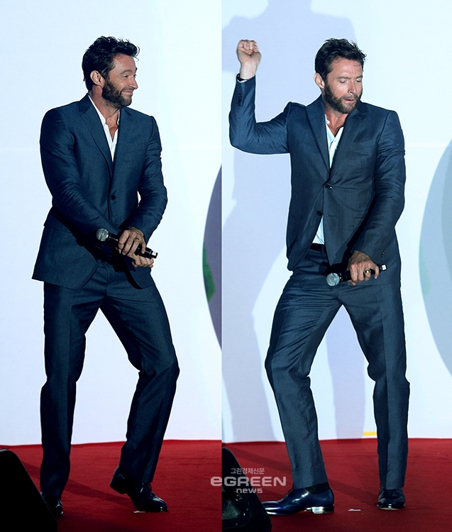 [글로벌이코노믹=유흥선기자] 휴 잭맨이 15일 저녁 서울 강남구 삼성동 코엑스 C홀에서 열린 영화 '더 울버린'의 레드카펫 슈퍼 콘서트에서 '어벤져스'에서 싸이의 말춤을 추고있다.