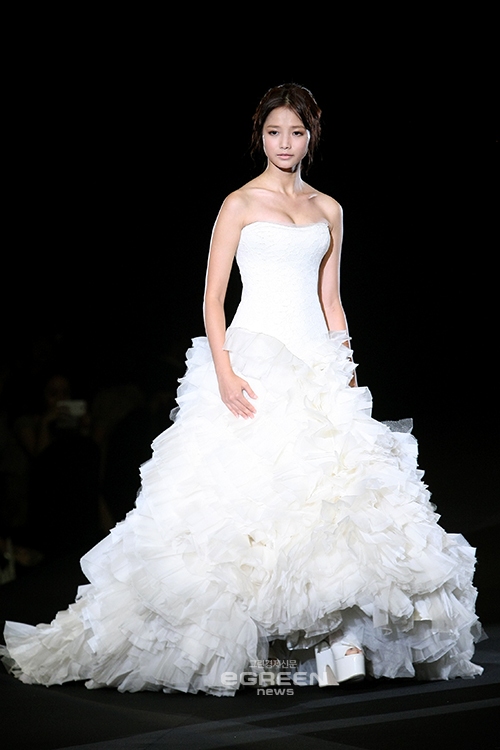 [글로벌이코노믹=유흥선기자] 배우 하연수가 16일 저녁 서울 용산구 한남동 그랜드 하얏트호텔 그램드볼룸에서 열린 베라왕 브라이드 코리아 'Fall 2013 Bridal Collection'에서 메인 모델로 첫 무대와 피날레 무대를 장식했다.