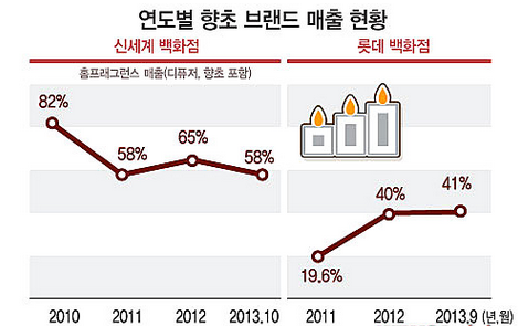 신세계백화점은 지난해 4월 경기점에 홈프래그런스 전문 매장을 연데 이어, 올해 2월 본점에도 새로운 매장을 선보였다. 경기점과 본점의 올해 매출 신장률은 128%에 달하는 등 소비자들에게 좋은 반응을 얻고 있다.