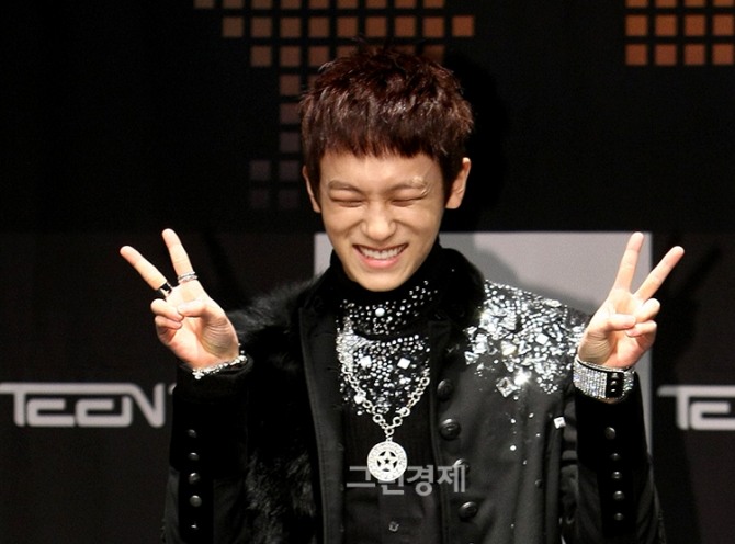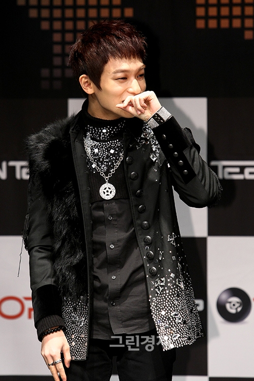 그룹 틴탑 (TEEN TOP) 엘조가 23일 오후 서울 송파구 올림픽공원 올림픽홀에서 열린 틴탑 2014 월드 투어 '하이킥'b11 인 서울(Teen Top 2014 World Tour 'High Kick' in Seoul) 공연에 앞서 기자회견에서 포토타임을 갖고 있다.