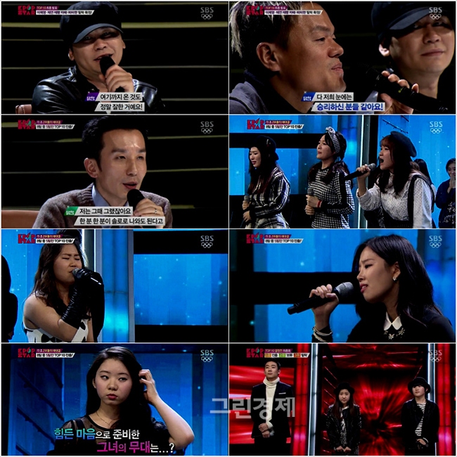 그런가하면 이날 ‘배틀 오디션’에서는 박승화의 ‘사랑해요’, 김범수의 ‘지나간다’를 불러낸 버나드 박과 한희준이 TOP10으로 선정됐다. 보니엠의 ‘Sunny’로 귀여운 매력을 한껏 발산했던 브로디와 태양의 ‘나만 바라봐’로 댄스무대에 도전했던 허은율은 탈락했다. 이어 진행된 2위 재대결에서는 모카의 ‘Happy’로 가창력에 승부를 건 이채영, 셰어 로이드의 ‘Swagger Jagger’로 무대를 즐겼던 ‘완전채(이채연-이채령)’, 아껴왔던 자작곡 ‘Help From Above’를 선보인 피터한이 아쉬운 작별을 고했다. 양현석-박진영-유희열은 최선을 다했던 참가자들에게 “진정한 승리자다”, “정말 대단하다”며 아낌없는 박수를 보냈다.
