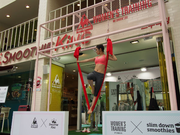 이번 쇼케이스는 4월 11일부터 시작해 오는 20일까지 스무디킹 가로수길점과 르꼬끄 매장에서 각각 진행된다. 우선, 이번 제휴의 메인 스테이지인 스무디킹 가로수길점에서는 다양한 요가 동작의 마네킹과 거울을 통해 르꼬끄 ‘우먼스 트레이닝’의 역동적인 디스플레이를 선보이며 주말에는 최근 트렌드로 떠오르는 플라잉 요가 퍼포먼스도 열린다.