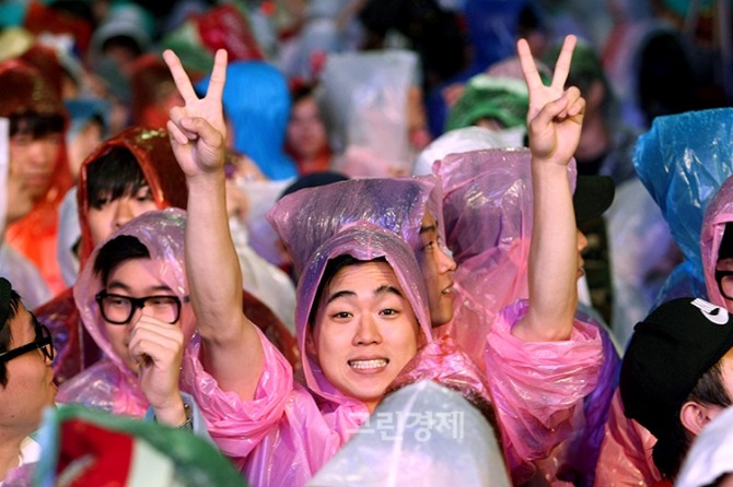 [글로벌이코노믹=유흥선 기자] 브라질월드컵 H조 조별리그 2차전 대한민국 대 알제리 경기에앞서 23일 오전 서울 강남구 삼성동 코엑스 영동대로 거리응원 현장에서 '대한민국 국가대표 축구팀 선전을 기원하는 응원을 펼치고 있다.