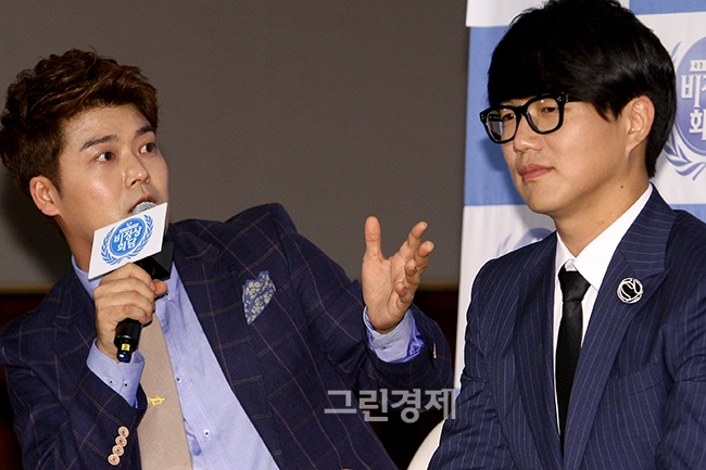 [글로벌이코노믹=유흥선기지] 방송인 전현무-성시경이 1일 오후 서울 중구 JTBC 호암아트홀에서 열린 JTBC 새 예능 프로그램 ‘비정상회담’의 제작발표회에 참석해 프로그램을 소개하고 자신감을 들어냈다.