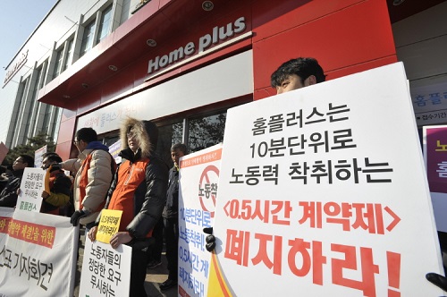 이에 대해 홈플러스 측 관계자는 “노조 측이 제시한 임금 인상률이 27%에 달해 교섭이 중지됐다”며 “노조와 교섭을 계속 진행하도록 노력할 것”이라고 말했다.