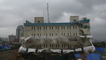 [글로벌이코노믹=윤경숙기자] 노량진 수산시장 현대화 사업에 따라 10일 오후 서울 노량진 수산시장 내 냉동창고 건물 발파해체 작업이 진행됐다.
