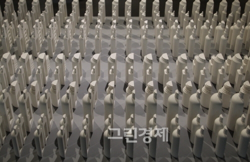회색을 뛰어넘는 이윤정의 백색제의, ‘조합과 배치를 달리하며 채움과 비움을 반복’하고 있는 수많은 도시의 대량 생산품들은 진시왕릉을 지키고 있는 병마들처럼 진용을 갖추고 있는 도시의 우울을 애처롭게 바라보고 있는 빔 벤더스의 ‘베를린 천사의 시’의 브루노의 모습이다. 작가 이윤정은 규격동일의 제품, 메마른 도시인, 현대인들의 건조한 정서를 따스하게 응시한다.