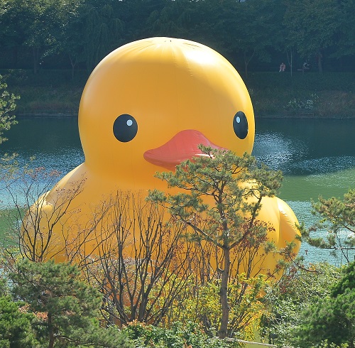 한편 러버덕은 지난 2007년부터 '러버덕 프로젝트'라는 이름을 달고 세계를 돌며 평화와 행복의 메시지를 전하고 있다. 한국에서는 송파구청과 롯데월드몰 공동 주최로 다음 달 14일까지 석촌호수에서 러버덕을 전시한다.
