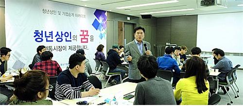 신세계그룹이 소상공인시장진흥공단과 함께 '청년상인 아카데미 과정'을 개설하는 등 청년 상인 육성에 나선 가운데 20일 오전 경기도 용인 신세계인재개발원에서 정일채 전 신세계푸드 대표가 가업 승계를 희망하는 전통시장 청년상인들을 대상으로 '전통시장의 CS경영' 수업을 강의했다. 신세계그룹은 신세계인재개발원에서 '청년기업가 정신', '아이템 선정원리와 성공창업 전략', '정부지원 정책과 자금 조달', '식품 위생과 안전' 등 총 17개의 과정을 11월 14일까지 진행할 예정이다.