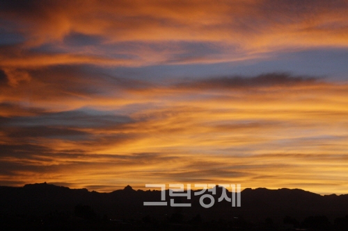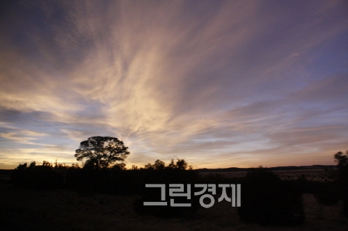 태양은 서쪽으로 분명히 사라졌는데, 언덕을 넘으니 다시 해가 같은 장소에 떠있다. 붉게 물든 노을. 끝없이 펼쳐진 초원과 도로. 그리고 반시 간만에 한 번씩 보이는 집. 대륙은 끊임없이 넓었다. 끝없이 펼쳐지는 대지에서 나는 갑자기 '광야에서'라는 노래가 생각났다.