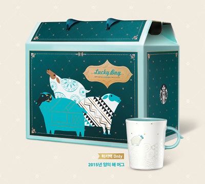 스타벅스 럭키백 구성은 고객이 가장 선호하는 것으로 알려진 스테인리스 스틸 텀블러가 1개 이상 포함되고 이외에도 40여 가지 다양한 종류로 준비됐다. 또한 스타벅스 무료 음료 쿠폰이 최대 7매 포함돼 있다. 올해는 청양의 해를 기념해 제작된 '청양 머그'가 포함되어 있다.