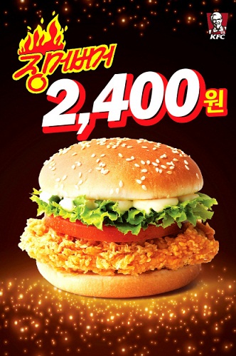 지난 1996년 출시된 '징거버거'는 KFC의 대표 메뉴로 4000원인 단품을 40% 할인한 2400원에 판매한다.